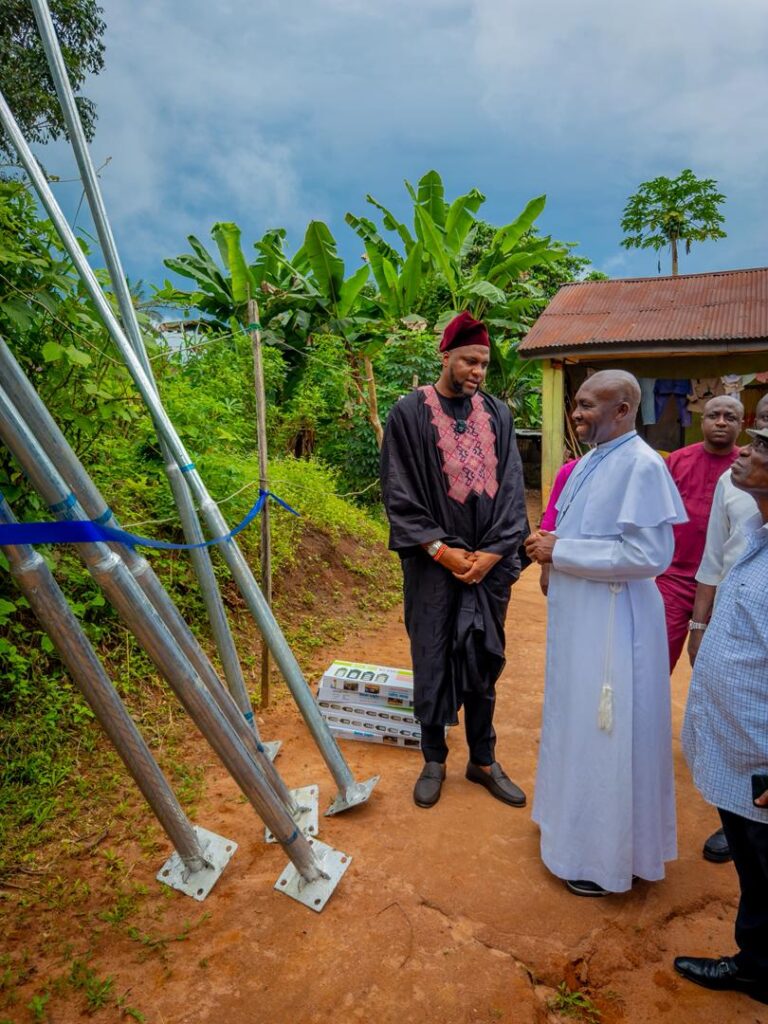 He donated solar powered street lights and promised to drill borehole to serve the settlement.